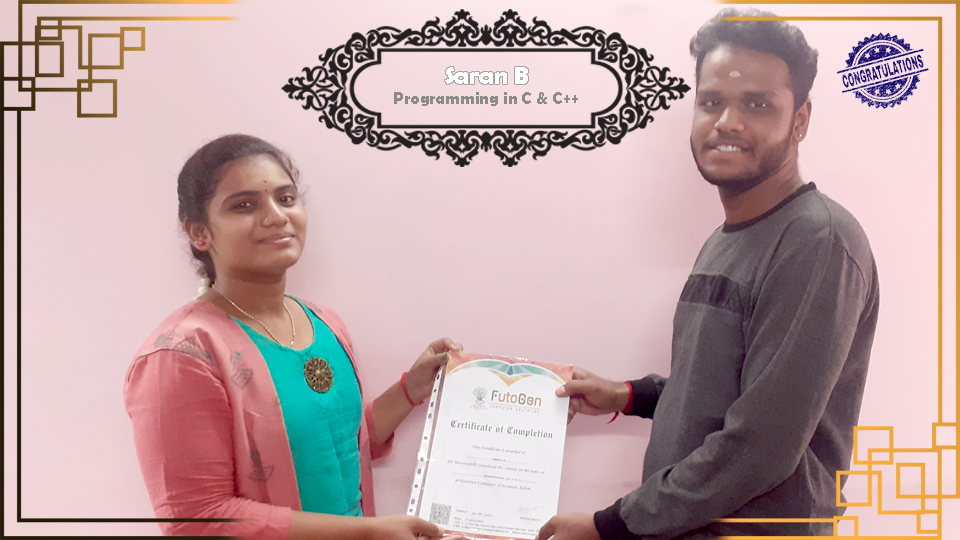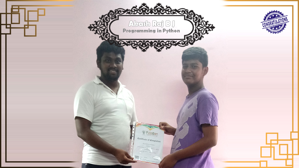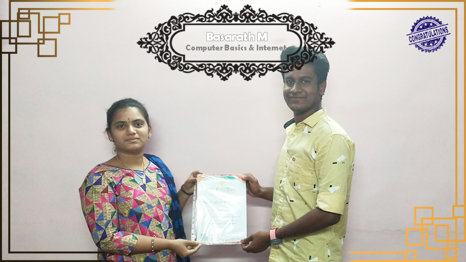 Certificate issued to Mr. Kishoth Kumar S