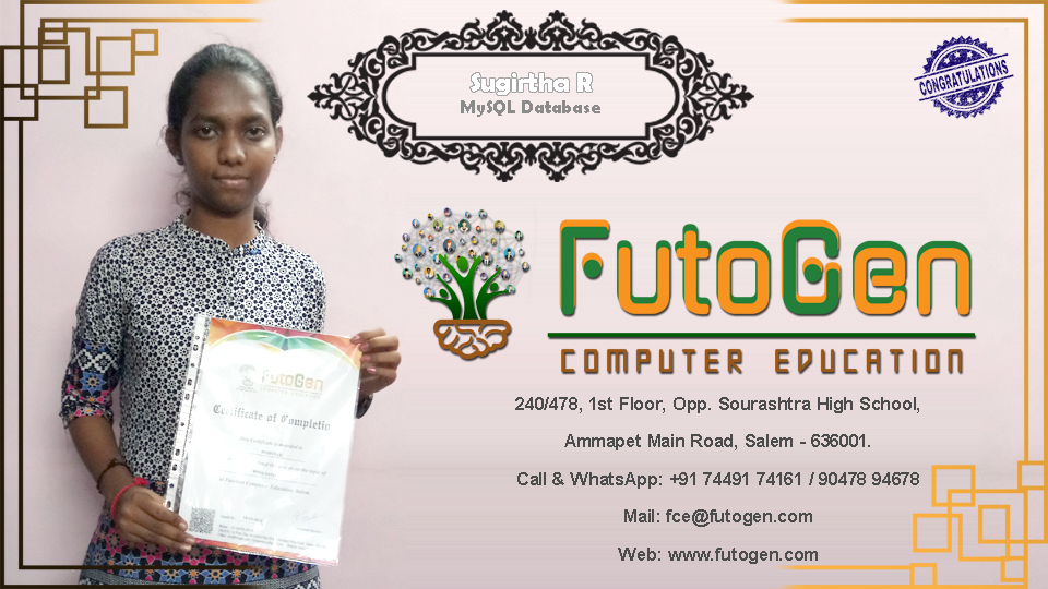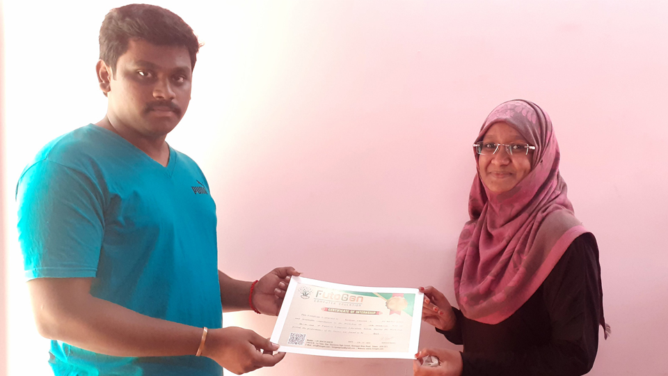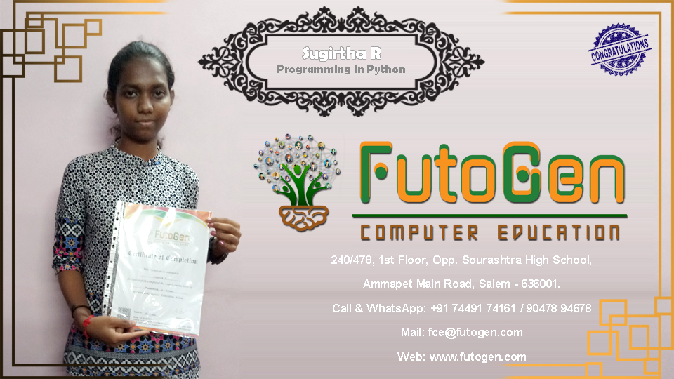 Certificate issued to Ms. Sugirtha R