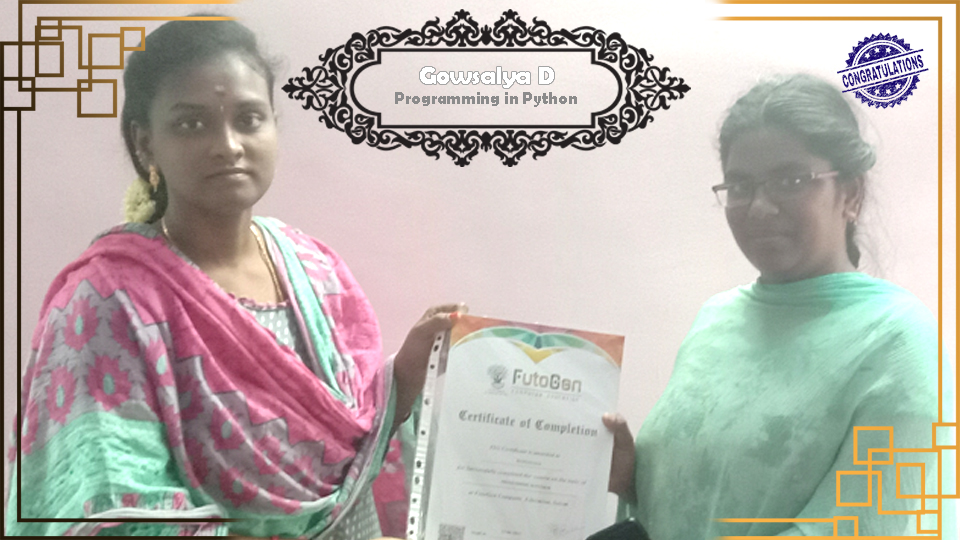 Certificate issued to Ms. Sowmiya S