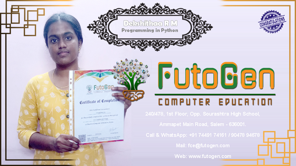 Certificate issued to Ms. Dharshini R