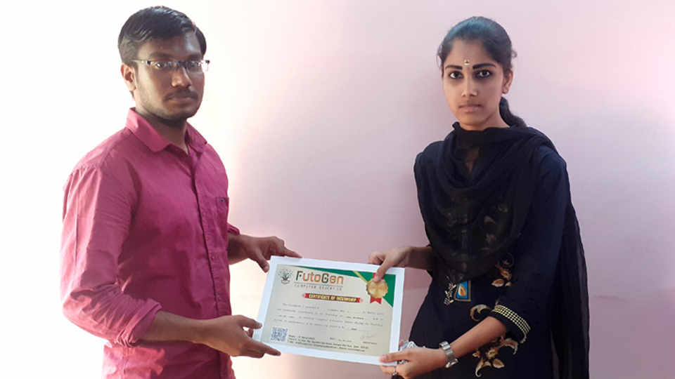 Certificate issued to Ms. Nivedha R