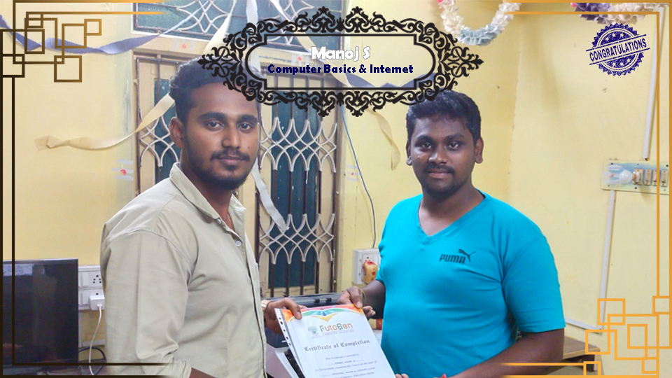 Certificate issued to Mr. Kishoth Kumar S