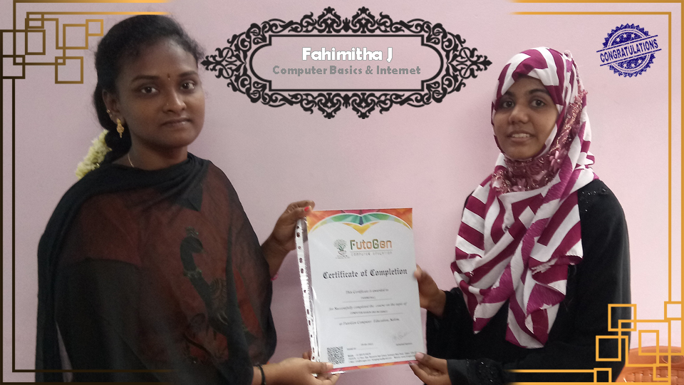 Certificate issued to Ms. Afra Jameela S